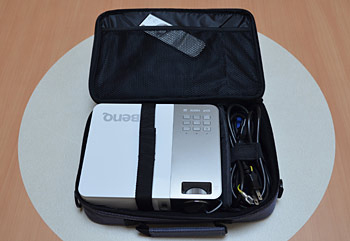付属のソフトキャリングケースに本体と電源ケーブル、リモコンなどがすっきり収まる
