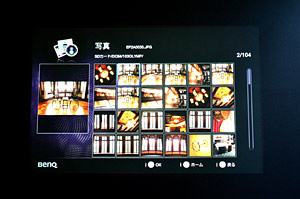 SDカードに保存した動画や写真などをそのまま投写することができる。まず画像を一覧表示する