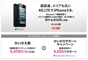 パケット定額料を1年間、毎月1050円割り引くキャンペーン「かいかえ割」とも併用できる