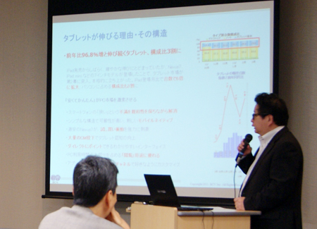 「なぜタブレットがPC市場を激変させるのか――2013年PC春商戦の結果と今後の展望」をテーマに解説する道越アナリスト