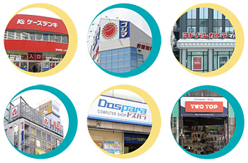 東口には、このほかドスパラ仙台店とTWOTOP仙台店のパソコン専門店がある。両店とも、ヨドバシカメラマルチメディア仙台と比べて売り場面積が小さいものの、専門店ならではの品揃えと接客によって、パソコン上級者を中心にお客様を獲得している。