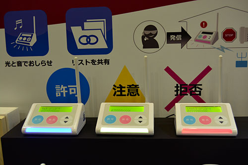 「迷惑電話チェッカー<WX07A>」は、固定電話に設置して、振り込め詐欺や勧誘電話などの迷惑電話からの着信を自動で警告するアダプタ。サーバー上にある迷惑電話番号情報をPHS回線で自動受信し、いままで着信がなかった番号からの迷惑電話でも自動で判別する。かかってきた電話を拒否することもできる。