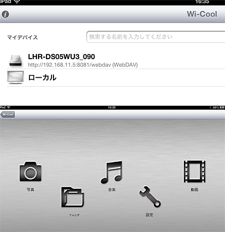 専用アプリ「Wi-cool」は、「LHR-DS05WU3」に保存した写真のを表示やダウンロードができるだけでなく、スマートフォン/タブレット端末に保存した写真をPCを介さずにワイヤレスで保存できて便利だ。