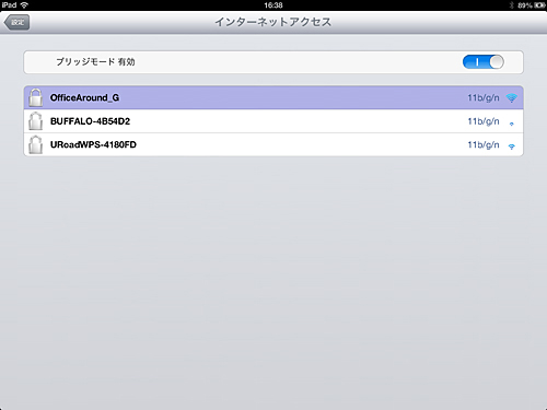 一対一での接続から「インターネットアクセス」を選び、ブリッジ接続に切り替える