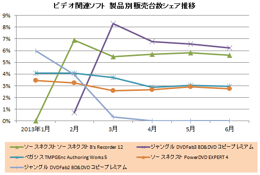 「DVDFab3」シリーズは、今年2月21日の発売。製品の入れ替え時期にあたる2月こそ首位を逃したものの、3月からこの6月まで、4か月連続で販売本数シェア1位をキープし続けている。