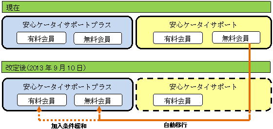 「安心ケータイサポートプラス」に一本化し、従来の「安心ケータイサポート」は有料会員向けサービスだけ継続する