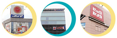 家電量販店では、高崎市に本社を置くヤマダ電機の存在感が最も大きい。ロードサイドに高崎本店の家電館とPC館を出店していたが、2008年7月、JR高崎駅前に大型の都市型店舗、LABI1高崎をオープン。地下2階、地上12階建てのビルで、このうち地下1階から地上4階までが売り場、5階にレストラン街の「LABI takasaki dining」が入る。6階から9階は1000台収容の駐車場で、10~12階はヤマダ電機の本社だ。2階がペデストリアンデッキでJR高崎駅東口と直結している。