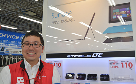 話を聞いたのは、「Surface」取扱店でカメラ系量販店の代表でもあるビックカメラの旗艦店舗・有楽町店のタブレット端末コーナー担当の梅内康弘主任だ。