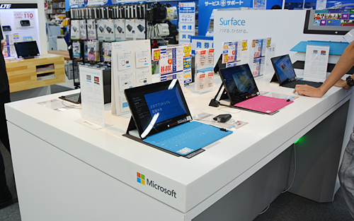 販売台数を公開することはできないが、と前置きをしたうえで、前田本部長は「一つ目安にしてほしいのが、家電量販店の売り場だ。いま、『Surface』は広いスペースをいただき、売り場のなかでもいい場所に置いてもらっている。店舗側としては、売れていない製品を前面に出すことはない」と「売れていない」説をばっさりと切り捨てる。