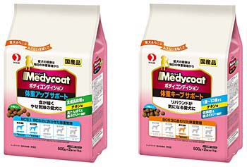 左から、「メディコート<ボディコンディション> 体重アップサポート」「ボディコンディション 体重キープサポート」