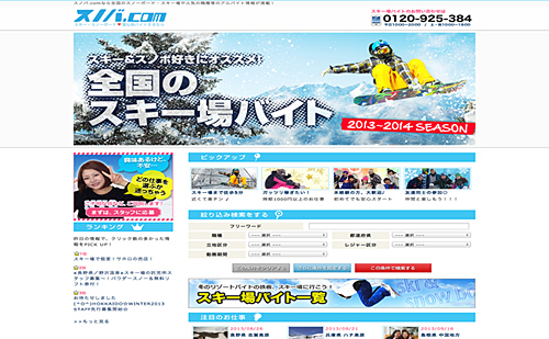 人材事業や旅行事業で蓄積してきたノウハウをもつヒューマニックが提供するアルバイト情報サイト。スキー・スノーボード関連のアルバイトに特化し、全国のスキー場、周辺ホテル・温泉宿、人気のゲレンデレストラン、スキー・スノーボードインストラクターなどのアルバイト情報を掲載する。