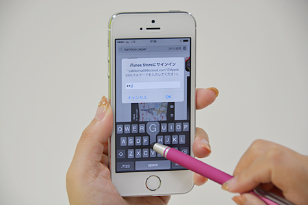 スタイラスペンのありがたみを一番感じたのが、パスワードの入力作業だ。iPhone 5以降、アプリをインストールするたびにAppIDの入力を求められるが、このローマ字キーボードのキーが小さく、5回に1回は隣のキーをタップしていた。しかし、スタイラスペンを使うようになってからは、このミスがまったくなくなった。「Bamboo Stylus solo」の細いペン先がキーのサイズにぴったりで、隣のキーまではみ出すことがない。