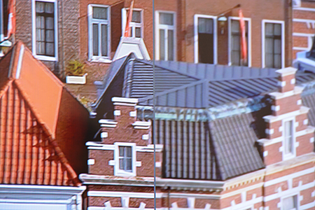 左が4K、右が2Kの画像。4K映像では瓦の精細感が増す