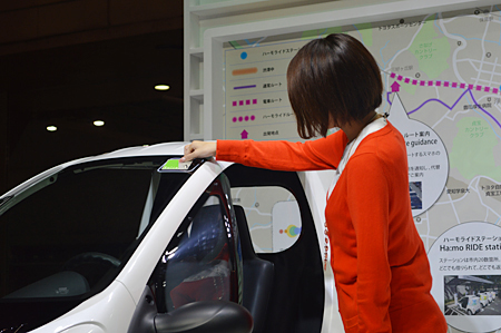 「Ha:mo RIDE」は、現在、愛知県豊田市で実証運用中。10月中に「COMS」を100台、「PAS」を100台、車両ステーションを21か所に増やす計画だ。また2014年には、一人乗りのパーソナルモビリティとして開発したコンセプトカー「i-ROAD」を「Ha:mo RIDE」に投入する予定。