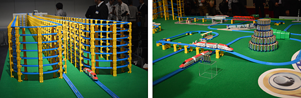 本番で使用する8m×8段ユニットのレール(右)会場に設置されたジオラマ