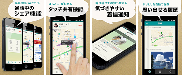 通話中に、おもしろいウェブサイトやお気に入りの写真、待ち合わせ場所の地図などを相手とシェアすることができ、一緒に見ながらコミュニケーションできる。シェアした情報は通話履歴に自動で保存するので、通話後に確認できる。