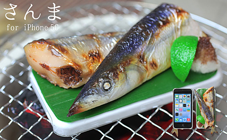 日本の食品サンプル職人が制作した精巧でリアルなiPhone 5c専用ケース。食品サンプルの照り具合や質感は、本物そっくり。特に「サンマ」は、尾びれや内臓までリアルに再現した。ケース部分はいずれも透明で、裏面から食品サンプル部分の裏側が見える。入荷は10月中旬~下旬の予定。