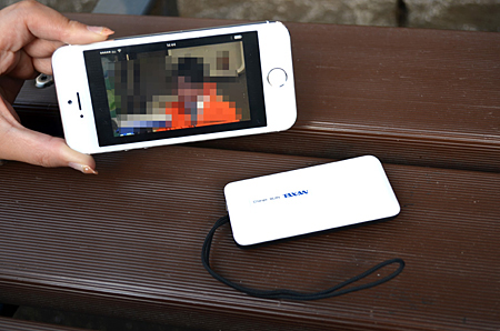 「MeoTune」を使って、都内を走る電車のなかでの視聴も試してみた。「MeoTune」本体はカバンやポケットにしまったままでも、アンテナになっているストラップ部分だけ出しておけば、確実にワンセグの受信感度がアップする。伸縮式のロッドアンテナを伸ばしていると、いかにも「ワンセグ放送を見ています」という感じだが、「MeoTune」のアンテナは目立たなくていい。手元にはiPhoneだけしかないので、その画面にテレビ放送がリアルタイムで映し出されていることに気づいた周囲の人は、きっと「どうやってテレビを見ているの?」と不思議に思うに違いない。