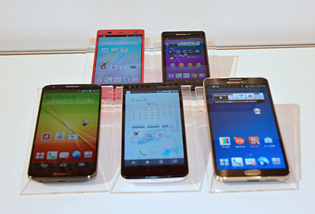 前週に発表会を開催したソフトバンクモバイルは、スマートフォンを3機種、au(KDDI)は6機種発表したが、ドコモは最多の9機種を揃えた。全機種でバッテリ容量を増やすなど、実使用時間を50時間以上にした。さらにそのうちシャープの「AQUOS PHONE ZETA SH-01F」、富士通の「ARROWS NX F-01F」、ソニーの「Xperia Z1 SO-01F」、サムスンの「GALAXY Note 3 SC-01F」、LGの「G2 L-01F」の5機種は、実使用時間3日以上を実現した。
