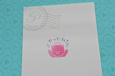 10回ほど試し押しをすると、色と形がくっきりと際立ってくる。かわいいくまのスタンプの完成だ。一つのスタンプ内でさまざまな色のインクを塗ることができるので、これまでにないカラフルなスタンプを作成することができる。