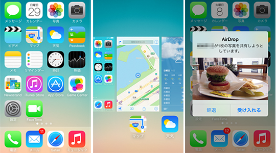 デザインとインターフェースを一新したiOS 7。向上したマルチタスキング、「コントロールセンター」や「AirDrop」、Wi-Fiまたはネットワーク経由で通話できる「FaceTimeオーディオ」などの新機能はiOS搭載デバイスで共通だ