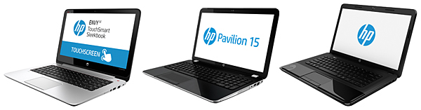 左から、「HP ENVY 14-k000 TouchSmart Sleekbook」「HP Pavilion 15-e100」「HP 2000-2d00」