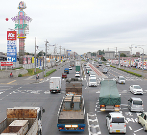 クルマ社会の水戸市で多くの市民がショッピングに訪れるのが、国道6号と国道50号をつなぐ水戸バイパスだ。大手家電量販店では、ケーズデンキ水戸本店が国道6号側の水戸バイパスの酒門町交差点に店を構える。付近には、国道50号側の水戸バイパス沿いにヤマダ電機テックランド水戸本店、コジマNEW水戸本店などが出店している。水戸市では、ケーズデンキとヤマダ電機、コジマを傘下に収めるビックカメラの3社が激しく競争している。