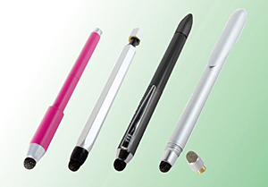 ナカバヤシグループのミヨシは、ペン先に柔らかい導電性の繊維を採用することで、ディスプレイ面との摩擦を少なくし、なめらかな操作感を実現したタッチペン「導電繊維ファイバーヘッドタッチペン」を、10月下旬に発売する。ラインアップは、「低重心タイプ」「六角タイプ」「3ウェイタイプ」「ペン先交換式タイプ」の4種類。価格はオープンで、実勢価格は1500~2000円前後の見込み。