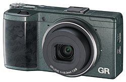 「GR Limited Edition」は、本体に重厚感のあるグリーンのウェブトーン塗装を施し、シャッターボタンやリングキャップなどをシルバーに仕上げた。グリップはブラックを基調とした木目調(グロス)で、ダイヤカット使用のレンズネームリングを備える。