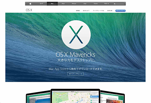 アップルは、10月23日、Mac用アプリケーション配信ストア「Mac App Store」で最新OS「OS X Mavericks」を公開した。アップグレードは無料。
