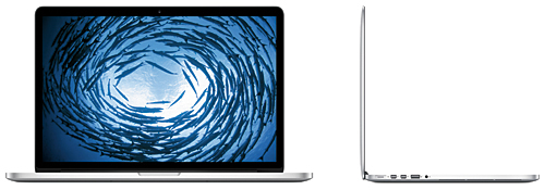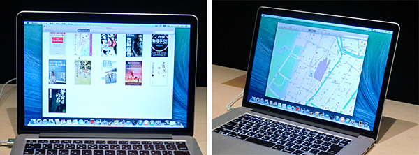 ラインアップは、解像度2560×1600の13.3インチモデルと、2880×1800の15.4インチの2モデル。15インチモデルは、統合型グラフィックスとして高い描画性能をもつIntel Iris Proを標準搭載し、上位機種はNVIDIA GeForce GT 750Mグラフィックスも搭載する。バッテリ駆動時間は、13インチモデルが最大9時間、15インチモデルが最大8時間。「Mavericks」は、消費電力を抑えながらパフォーマンスをさらに高めるテクノロジを搭載し、バッテリ駆動時間は前世代に比べて、13インチモデルで2時間、15インチモデルで1時間長くなった。サイズと重さは、13インチモデルが約高さ1.8×幅31.4×奥行き21.9cmで約1.6kg、15インチモデルが約高さ1.8×幅35.9×奥行き24.7cmで約2.0kg。