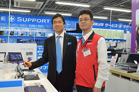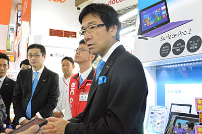 日本マイクロソフトの樋口泰行社長は、タブレット端末「Surface 2」「Surface Pro 2」の発売を記念して、10月25日、ビックカメラの旗艦店・有楽町店を訪問した。