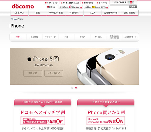 ドコモの「iPhone」紹介ページ