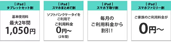 ソフトバンクモバイル、LTE対応の「iPad」シリーズが月額1050円で利用できる「タブレットセット割」