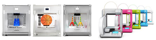 左から、「CubeX」「CubeX Duo」「CubeX Trio「Cube」