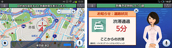 現在地周辺や、その先の渋滞情報を通知するほか、スマートフォンの電話帳に登録している宛先に音声操作で電話を発信できる。対応機種は、Xperia AX SO-01E、XPERIA Z SO-02E、Xperia A SO-04E、Xperia Z1 SO-01F、Xperia Z1 f SO-02F、GALAXY S III SC-06D、GALAXY S4 SC-04E、ARROWS NX F-01F、AQUOS PHONE ZETA SH-02E、AQUOS PHONE ZETA SH-01F。