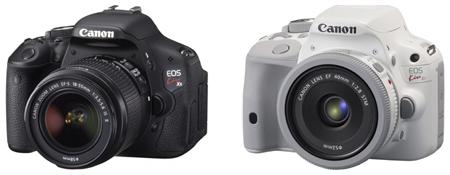 「EOS Kiss X5」(左)と最新機種「EOS Kiss X7」のホワイトモデル
