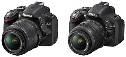 「D3200」(左)と横開きのバリアングル液晶を搭載した「D5200」