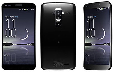 日本初の曲面スマートフォン、G Flex LGL23(左から前面、背面、側面)