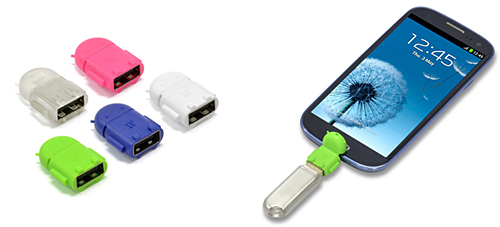 Androidを搭載したスマートフォン/タブレット端末のmicroUSB端子に取りつけて、USBメモリやUSB接続のカードリーダーからデータを取り込むことができるOTGアダプタ。動画などサイズの大きなデータを、必要なときだけAndroid端末に読み込めるので、端末側のメモリ残量を気にすることなく使用できる。