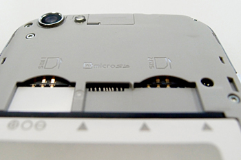 背面カバーを外すとSIMカードを2枚挿入することができる