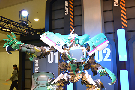 このロボット、時速320kmで走行するE5系がロボットにスピード変形したものだという。ブース内で流れていたイメージ動画は、線路を走っていたE5系があっというまにロボットに変形し、高速で線路を走り抜ける、というもの。新幹線をモチーフにしただけあって、スピード感のあるカッコいい動画だった。