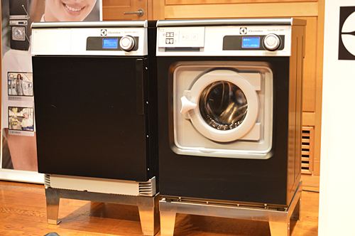 エレクトロラックスは、7月4日、東京・六本木のスウェーデン大使館で、ビジネスホテルや都市部のコインランドリー、老人ホームなどをターゲットにしたセミプロフェッショナル向けの洗濯機「QuickWash」と乾燥機「QuickDry」を発表した。