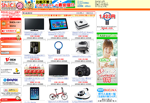「ShaCa」は、当選すれば入札価格で商品を購入することができるロト方式のオークション。当選者は、入札者のなかから抽選で決定する。当選確率は金額に関係ない。家電が最大98%オフで、液晶テレビが252円などもある。過去には、トヨタ自動車の「プリウス」が7512円で購入されたこともある。