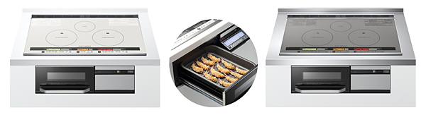 「J100Tシリーズ」は、3口IHで鉄・ステンレス対応。税別価格は、75cmモデルのホワイト(HT-J100XTWF)が36万4000円、グレーメタリック(HT-J100HTWF)が35万4000円、60cmモデルのホワイト(HT-J100XTF)が34万4000円、グレーメタリック(HT-J100HTF)が33万4000円。