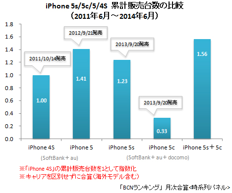 「iPhone 5s」の累計販売台数は、まだ「iPhone 5」より少ない