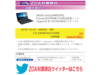 通販サイト「e-zoa.com」でZOA秋葉原本店の在庫情報を閲覧できる