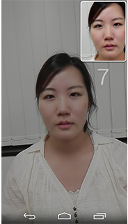 サブカメラは、35mm換算で約30mm相当の、広角80°の800万画素カメラを搭載する。セルフタイマーモードで、シャッターボタンをタップした後、視線や表情をつくることができた。セルフタイマーでカウントダウンをしている間は右上部にプレビュー画面が表示される。このプレビュー画面を見ていると視線が安定するほか、カメラ目線の写真を撮影できる。