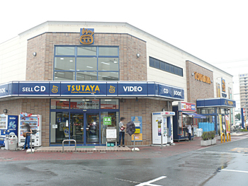 コジマ×ビックカメラ福生店周辺はスーパーのいなげや福生銀座店やTSUTAYA福生店(写真)があるショッピングエリア