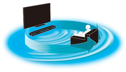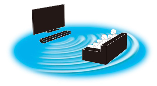それは、前面のスピーカーだけで仮想的なサラウンド環境を実現する独自の「S-Force PRO フロントサラウンド」があるから。「波面制御技術」で大口径60mmの七つのスピーカーの音の干渉を巧みに利用しながら、広範囲でサラウンドを制御し、立体的な音場を再現する。音をリビングの壁などにバウンドさせる方式とは異なり、部屋の間取りを問わず、クオリティの高いサラウンド空間ができあがる。